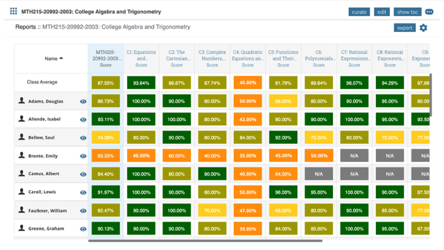 Just in Time Math offers a solution designed to support students who need to refresh their foundational math knowledge. It unlocks granular, individualized insights into gaps in learning that instructors can use for targeted guidance. When used as a corequisite (companion course) to college-level math courses or as a tool in tutoring centers, Just in Time Math enables personalized, targeted support to bridge math skill gaps driving improved outcomes.